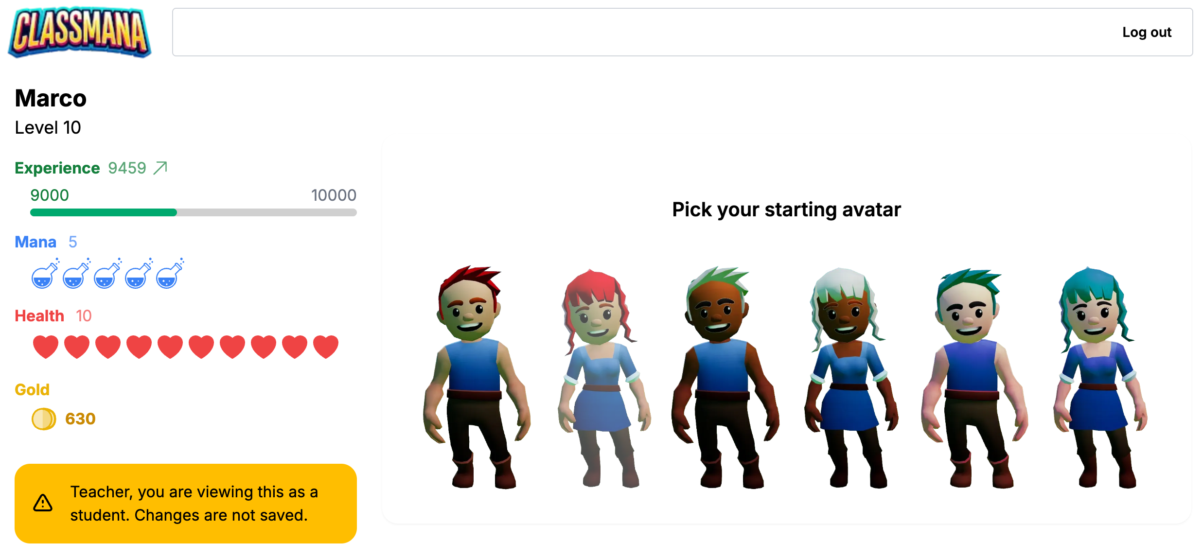 Når elever logger ind, kan de bruge kræfter og købe butiksgenstande direkte fra deres avatar-dashboard. Du bestemmer, om de kan bruge genstande øjeblikkeligt eller skal anmode om din godkendelse først.